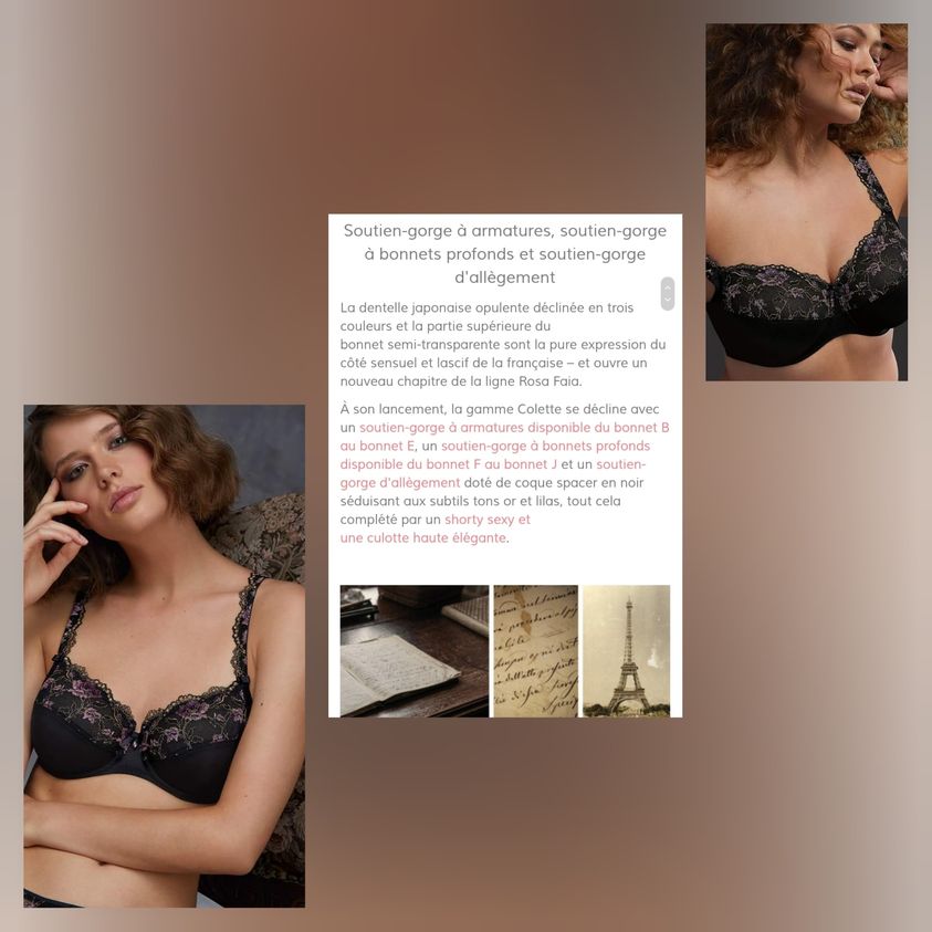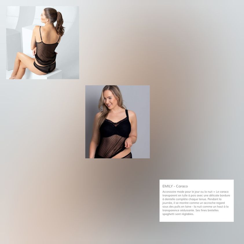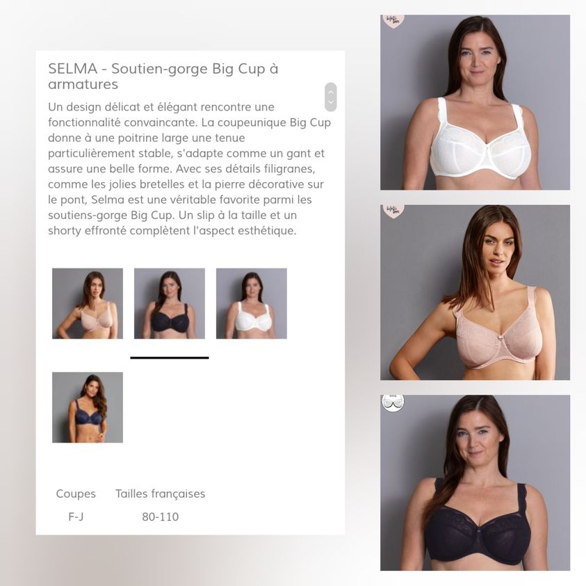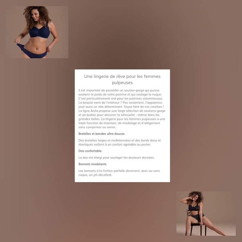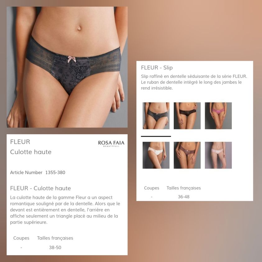 Une boutique cosy, des modèles de créateurs qui jouent en beauté avec les rondeurs, des couleurs d'une gaieté folle... Les rondes, les très rondes voire les très très rondes, ont enfin leur boutique. Vous avez la possibilité de commander le modèle et la taille que vous souhaitez, avec un délai de livraison de 10 jours. Voici quelques extraits des catalogues de lingerie des différentes marques de créateurs que Joëlle a le plaisir de vous présenter. |