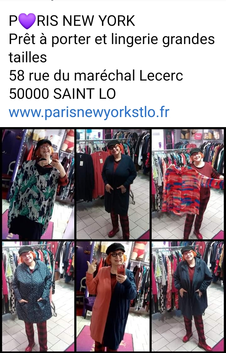 PARIS NEW-YORK boutique de prêt à porter grandes tailles 44-64 58 rue du maréchal Leclerc 50000 SAINT LO HORAIRES lundi et jeudi 14h 19h mari mercredi vendredi samedi 10h 12h 14h 19h